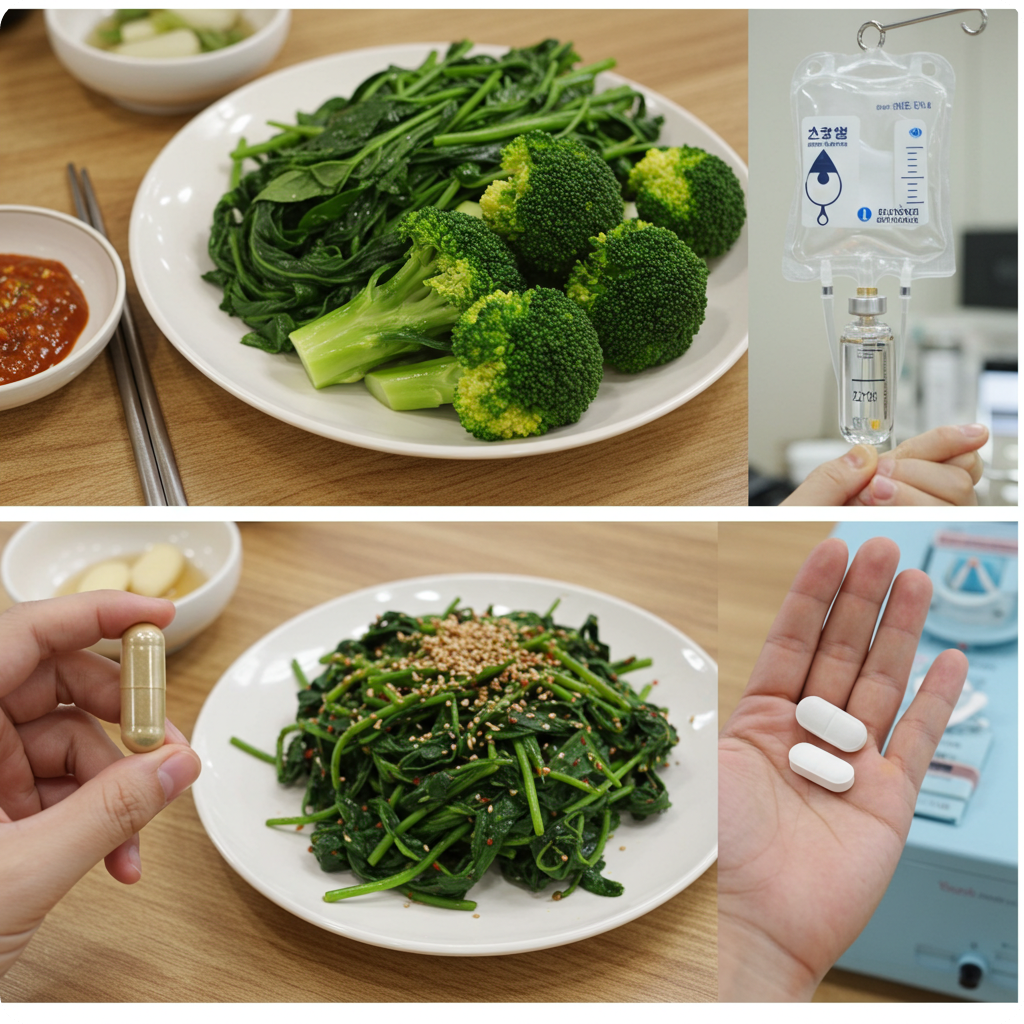 일상 식단에서 꾸준히 채소를 섭취하는 것이 기본이며, 부족할 경우 영양제로 보충하는 것이 효과적입니다.