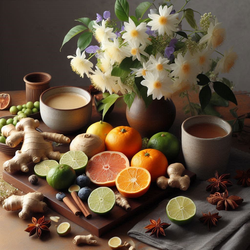 생강은 체온을 올리고 면역력을 높여줘 기침과 감기에 자주 활용됩니다.