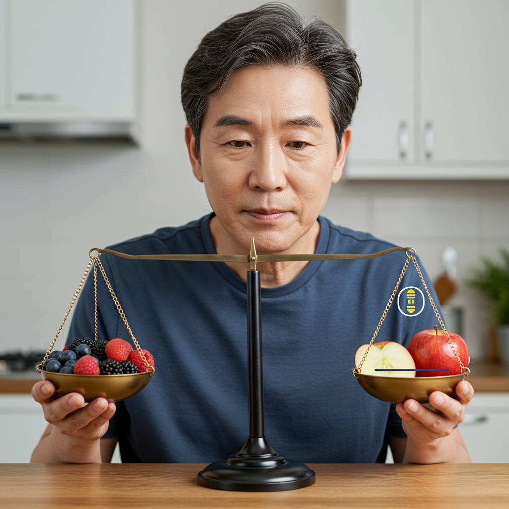 과일에도 천연 당분이 포함되어 있어, 과다 섭취하면 혈당이 급격히 오를 수 있습니다. 따라서 **종류와 섭취량**을 신중하게 선택해야 합니다.