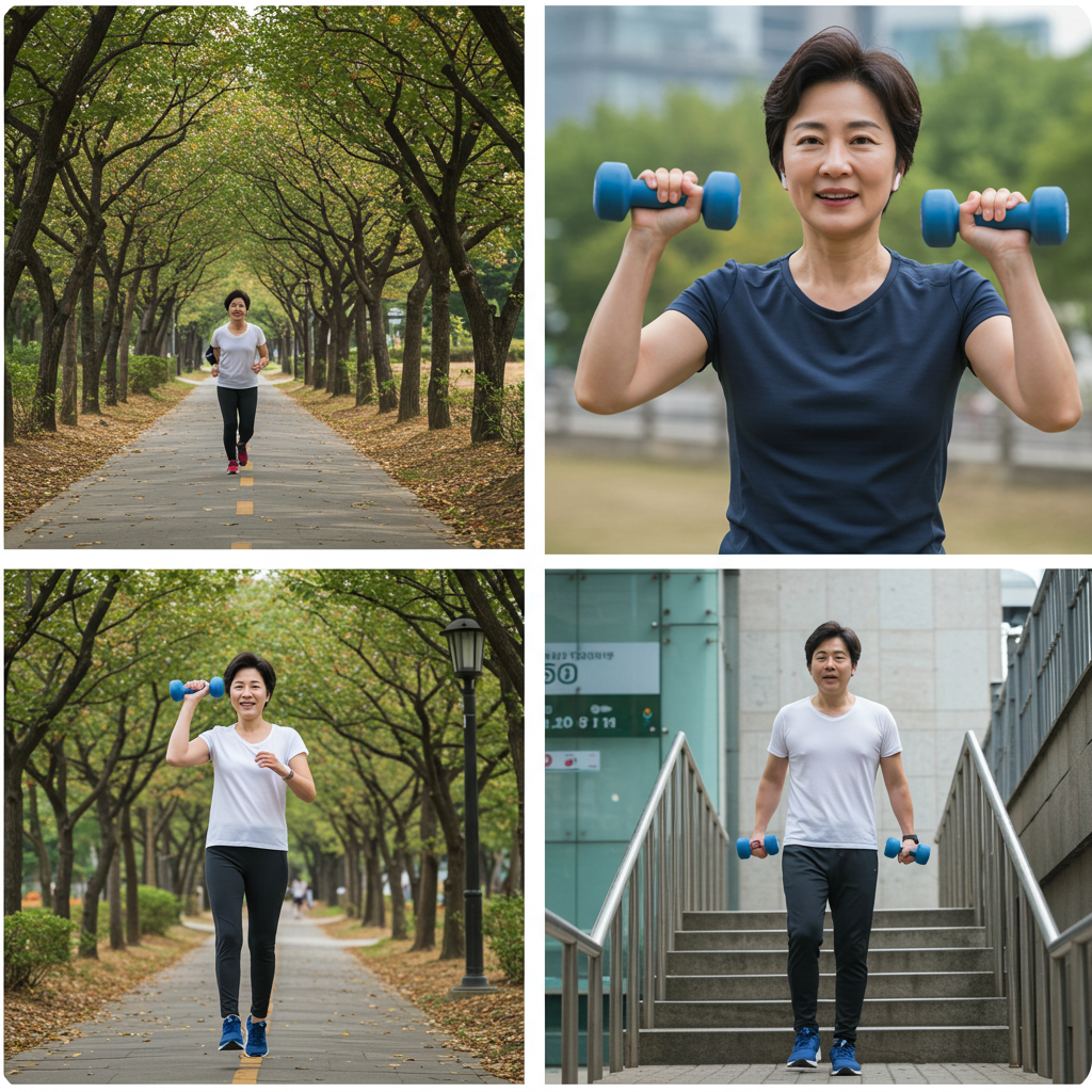 식사 후 10분만 가볍게 걷는 것도 혈당 상승 억제에 큰 도움이 됩니다. 또한 계단 이용, 가벼운 집안일 등 일상 속 활동량(NEAT)을 늘리는 것이 좋습니다.