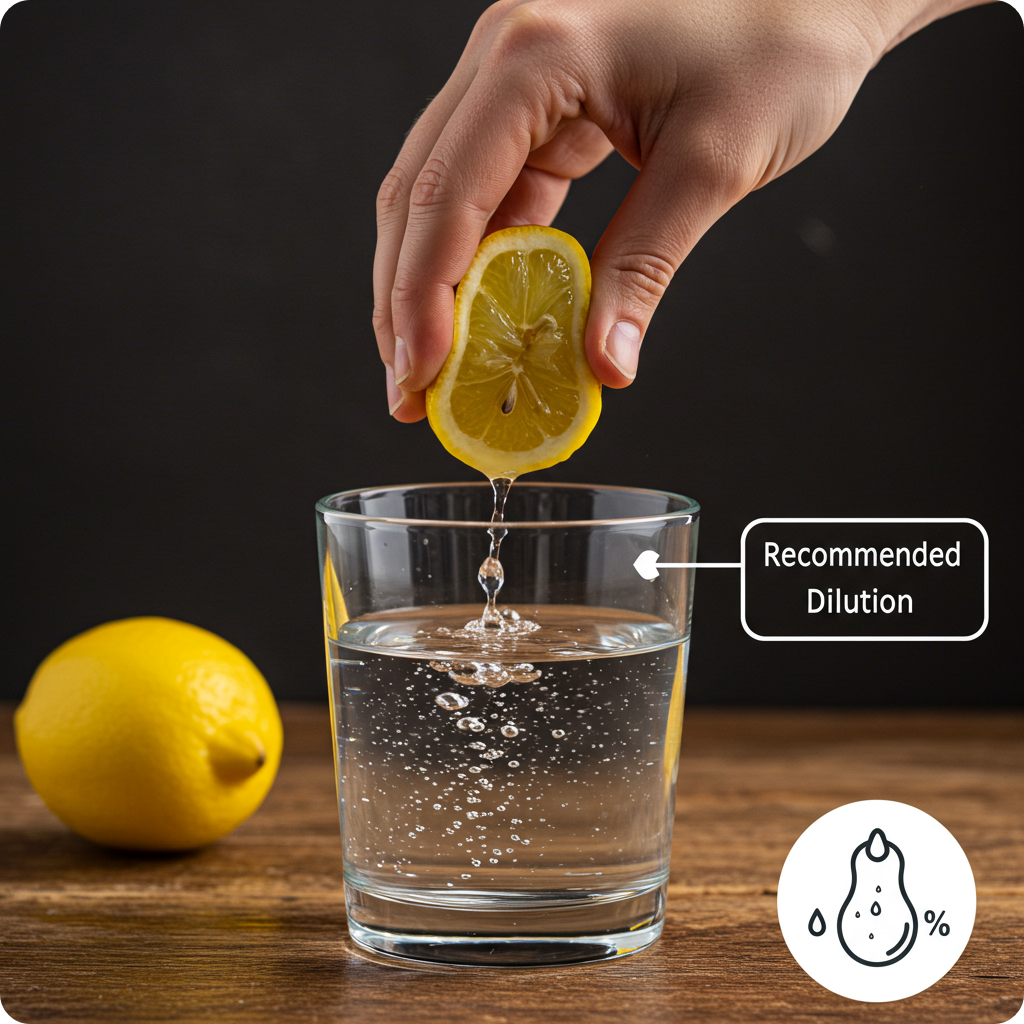 레몬즙은 원액 그대로 마시면 강산성이 치아와 위를 자극할 수 있으므로 반드시 물에 희석해서 섭취하는 것이 좋습니다.