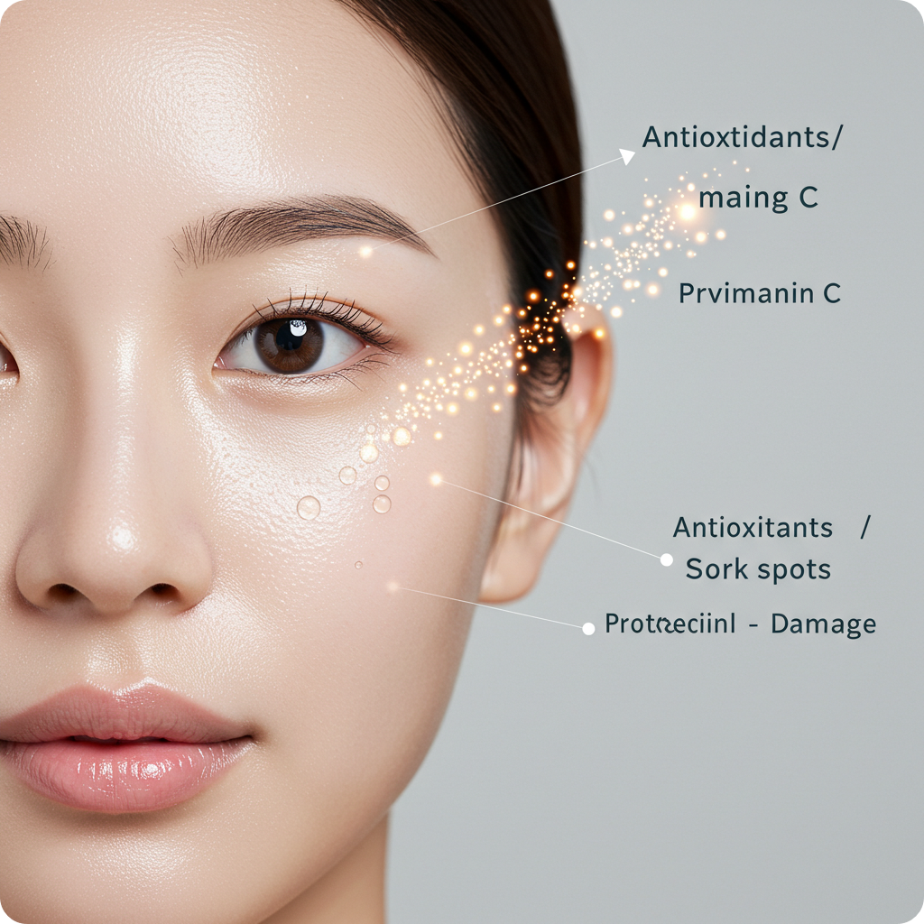 비타민 C는 멜라닌 합성을 억제해 피부 톤을 밝게 하는 데 도움을 줍니다.