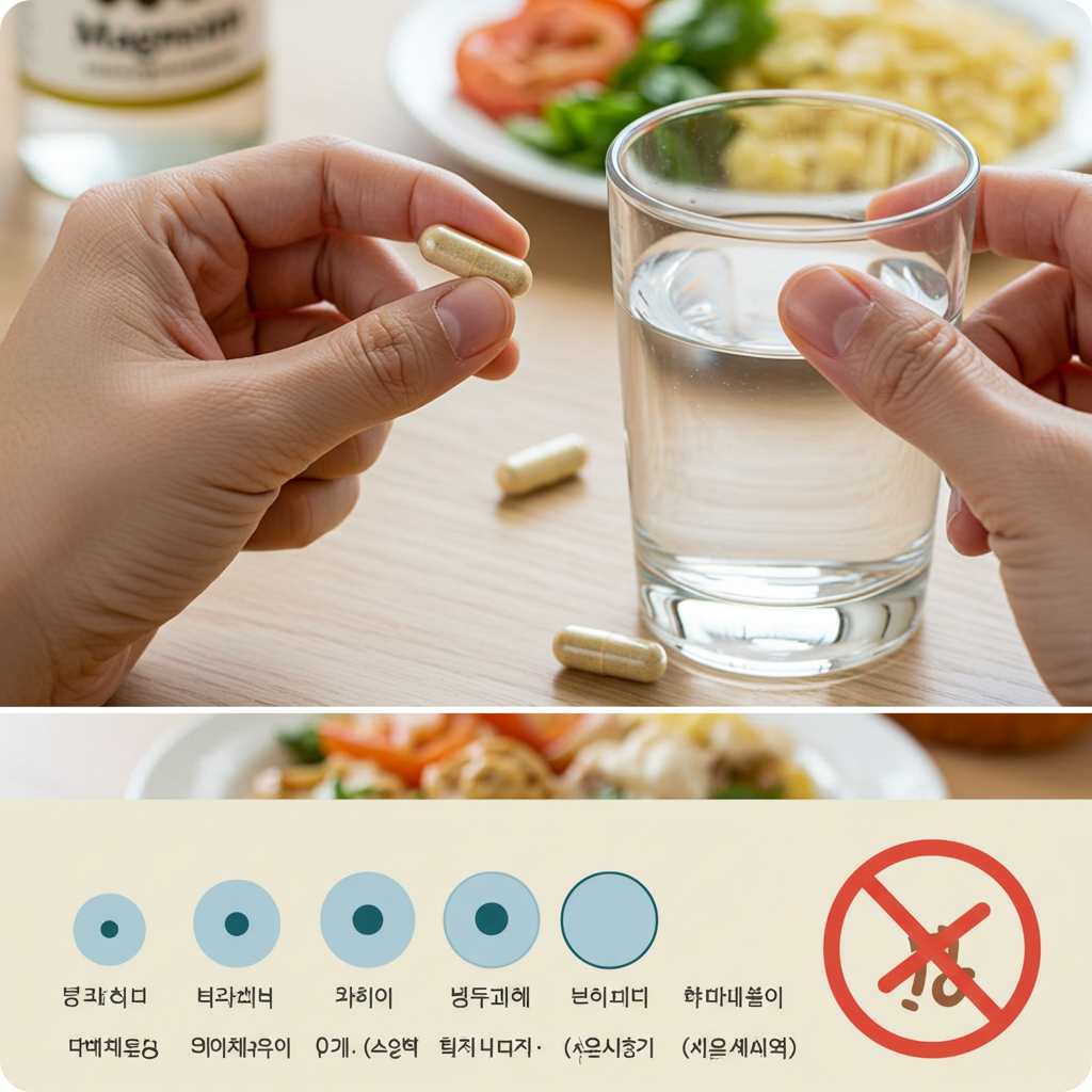 - 칼슘·철분 등 다른 미네랄과 시간차 두고 복용