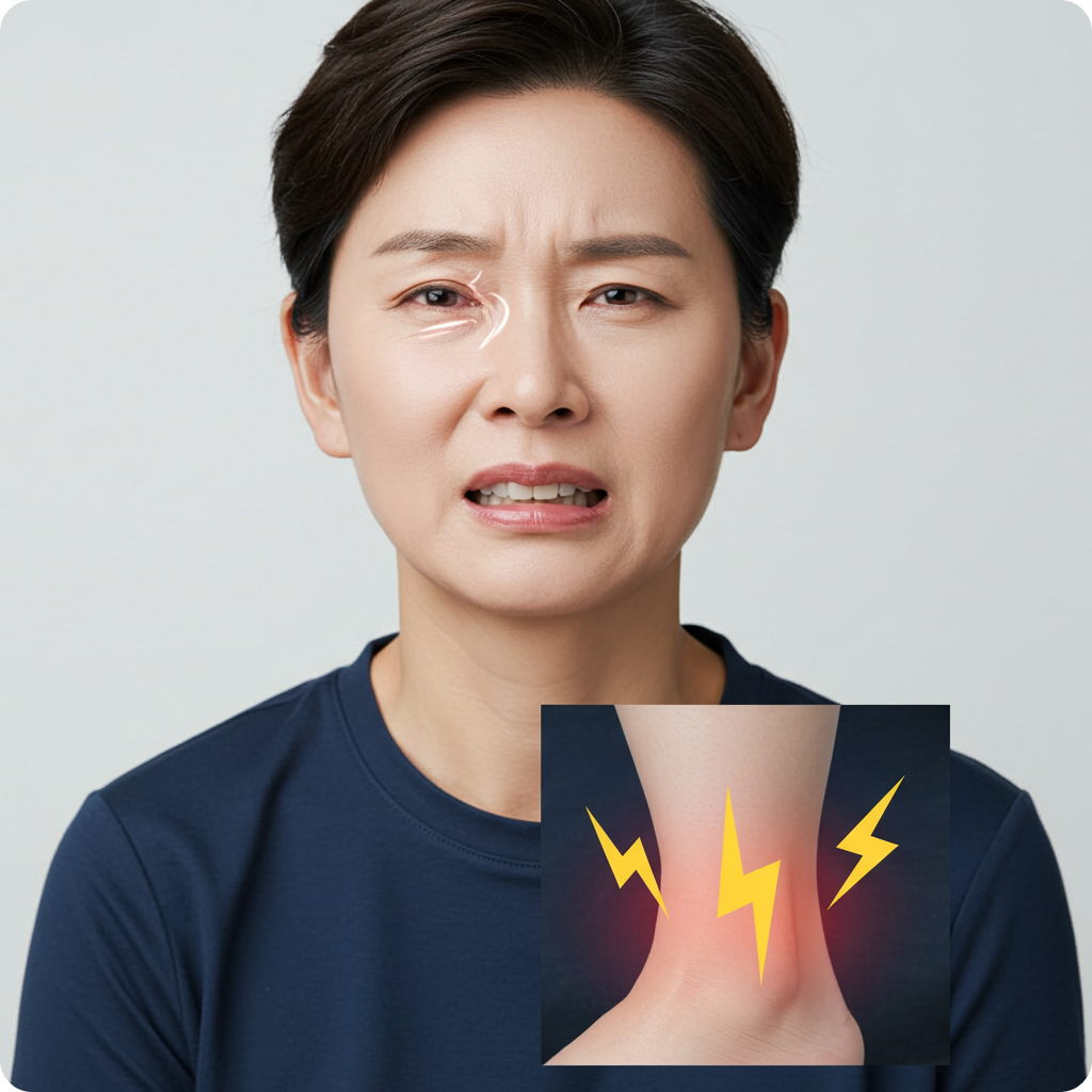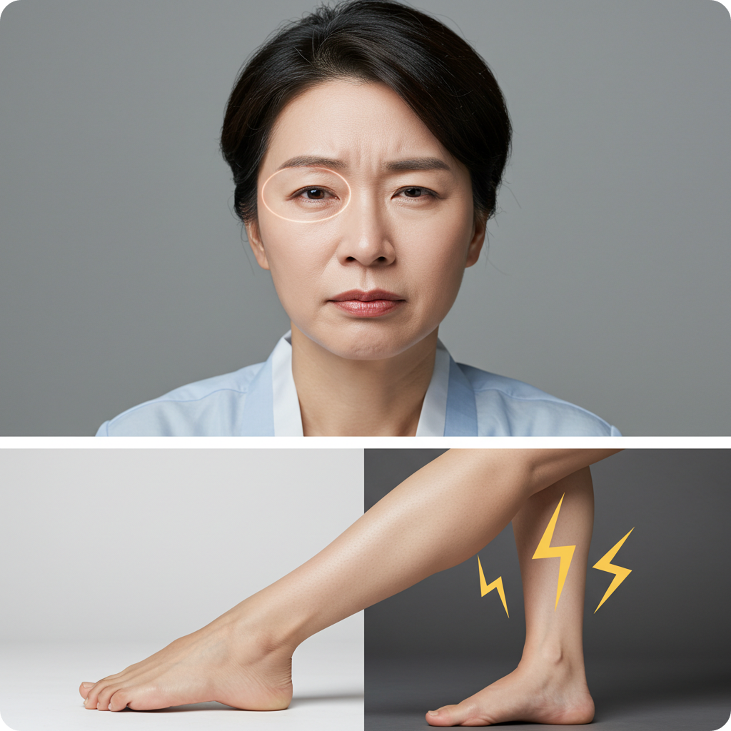 - 근육·신경계: 다리 쥐, 근육 경련, 눈 밑 떨림