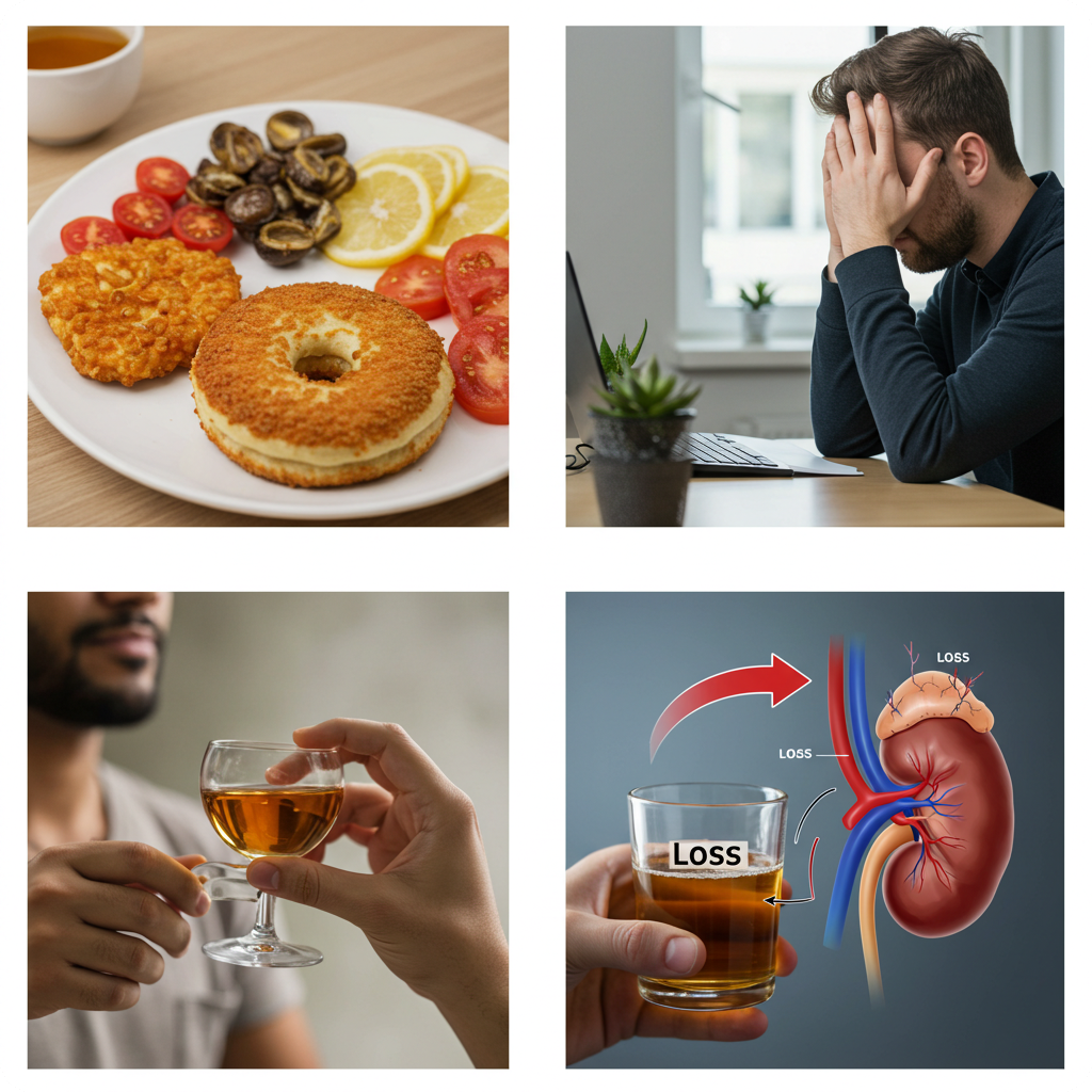 - 불균형한 식습관: 가공식품 위주, 채소·견과 섭취 부족