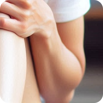 무릎 앞쪽이 동그랗게 불룩, 눌렀을 때 말랑함이 느껴질 수 있습니다.