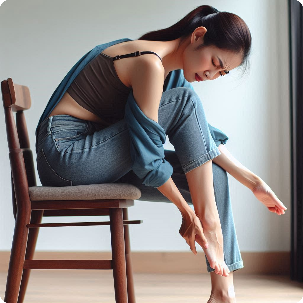오랜 시간 다리를 꼬거나 무릎을 구부리고 앉는 자세는 발가락 쪽 근육에 부담을 줘요.