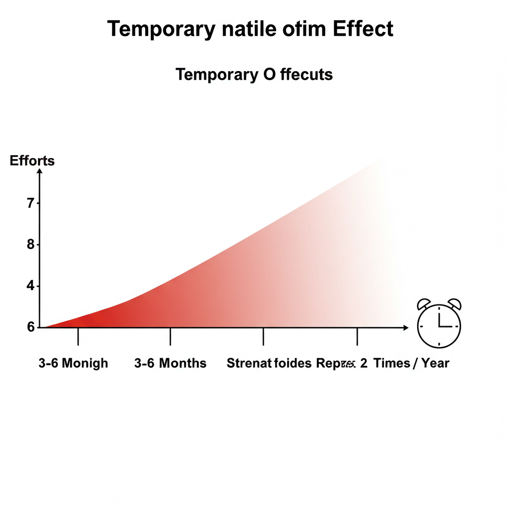 대부분의 보톡스 효과는 3~6개월 지속됩니다. 개인의 근육 사용량과 대사 속도에 따라 차이가 있으며, 꾸준히 시술하면 유지기간이 점차 길어지는 경향이 있습니다.