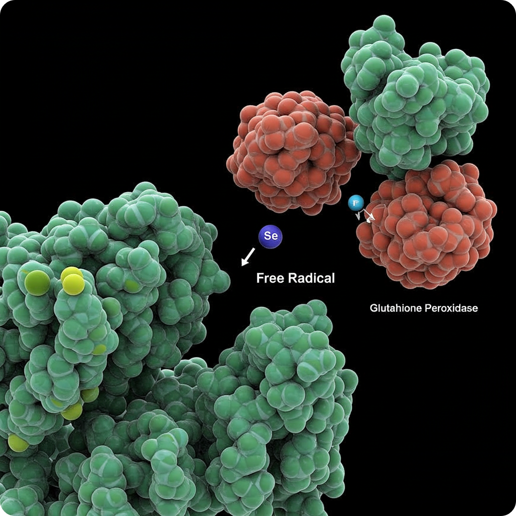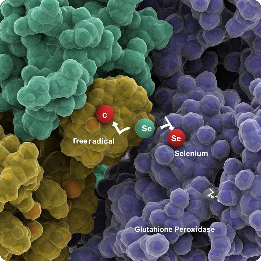 셀레늄은 여러 효소(특히 글루타티온 퍼옥시다제)의 구성 성분으로, 활성산소 제거와 세포 보호에 중요한 역할을 합니다.