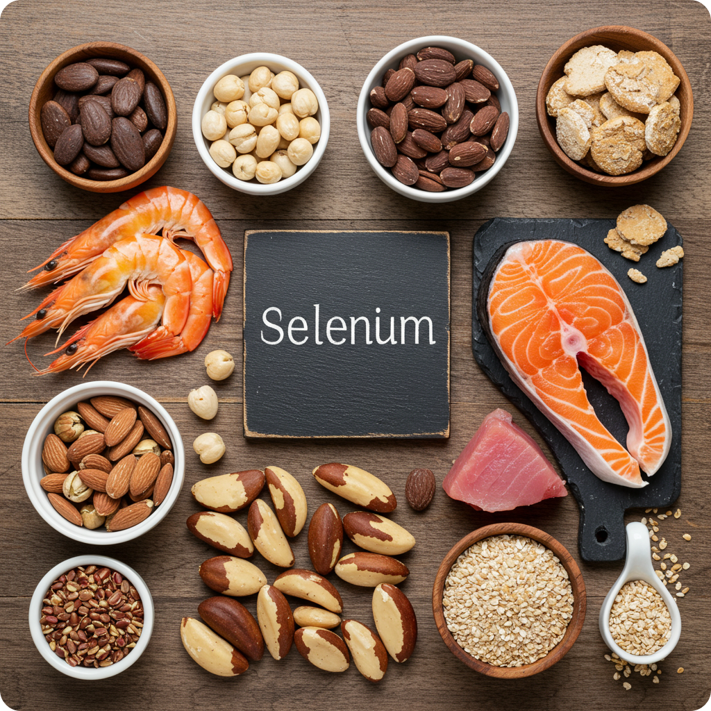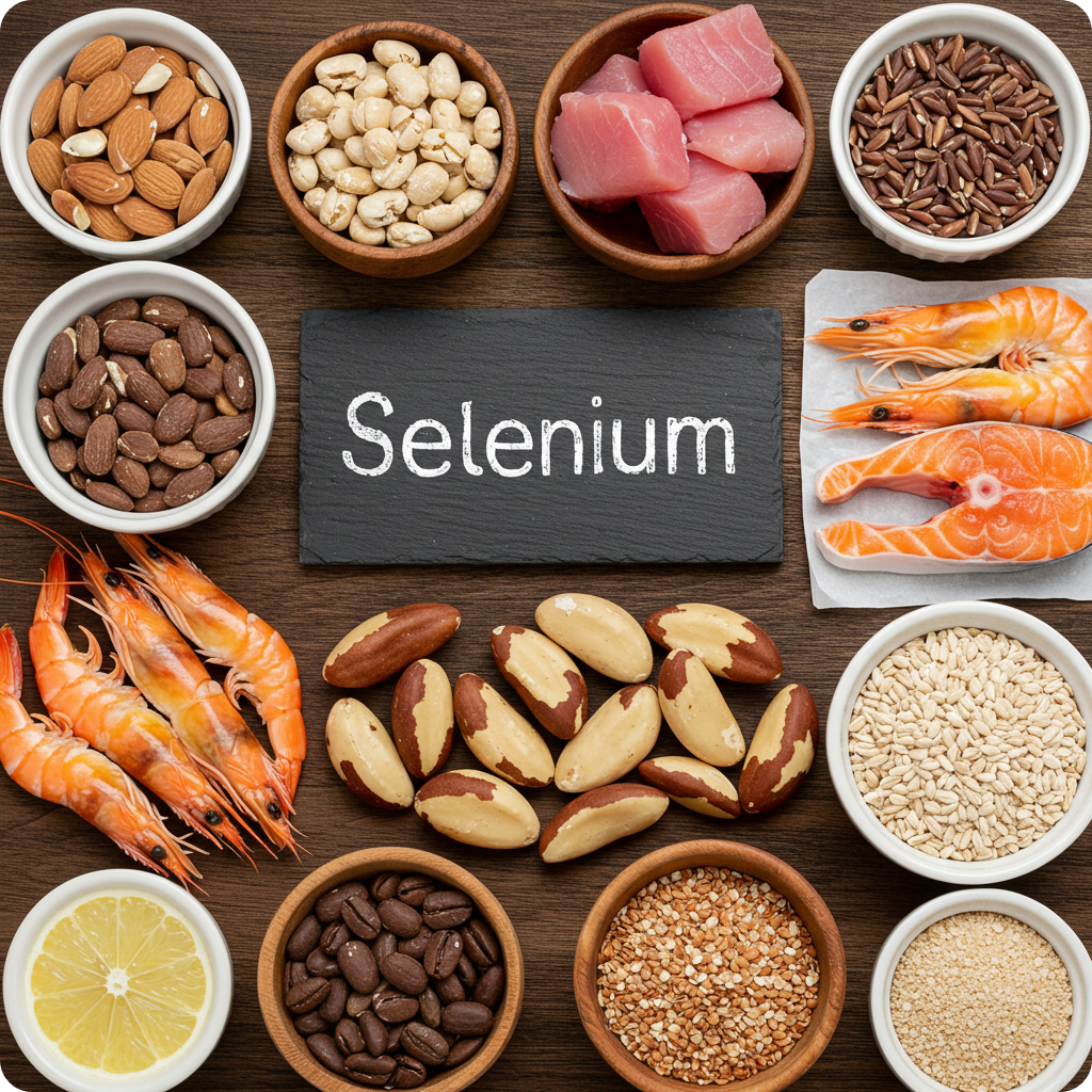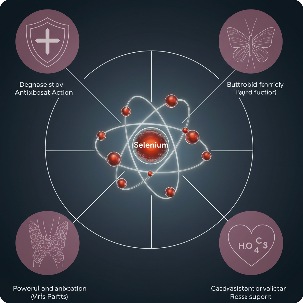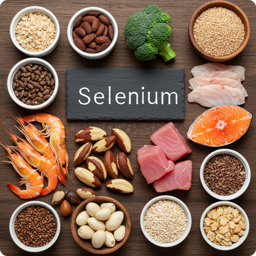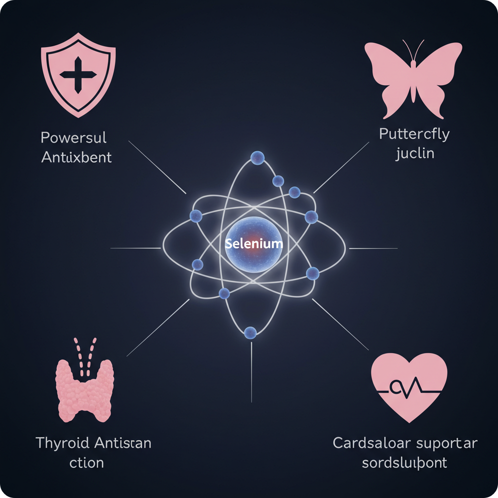 셀레늄은 소량이지만 강력한 항산화 효과로 전신 건강에 도움을 주는 필수 미네랄입니다.