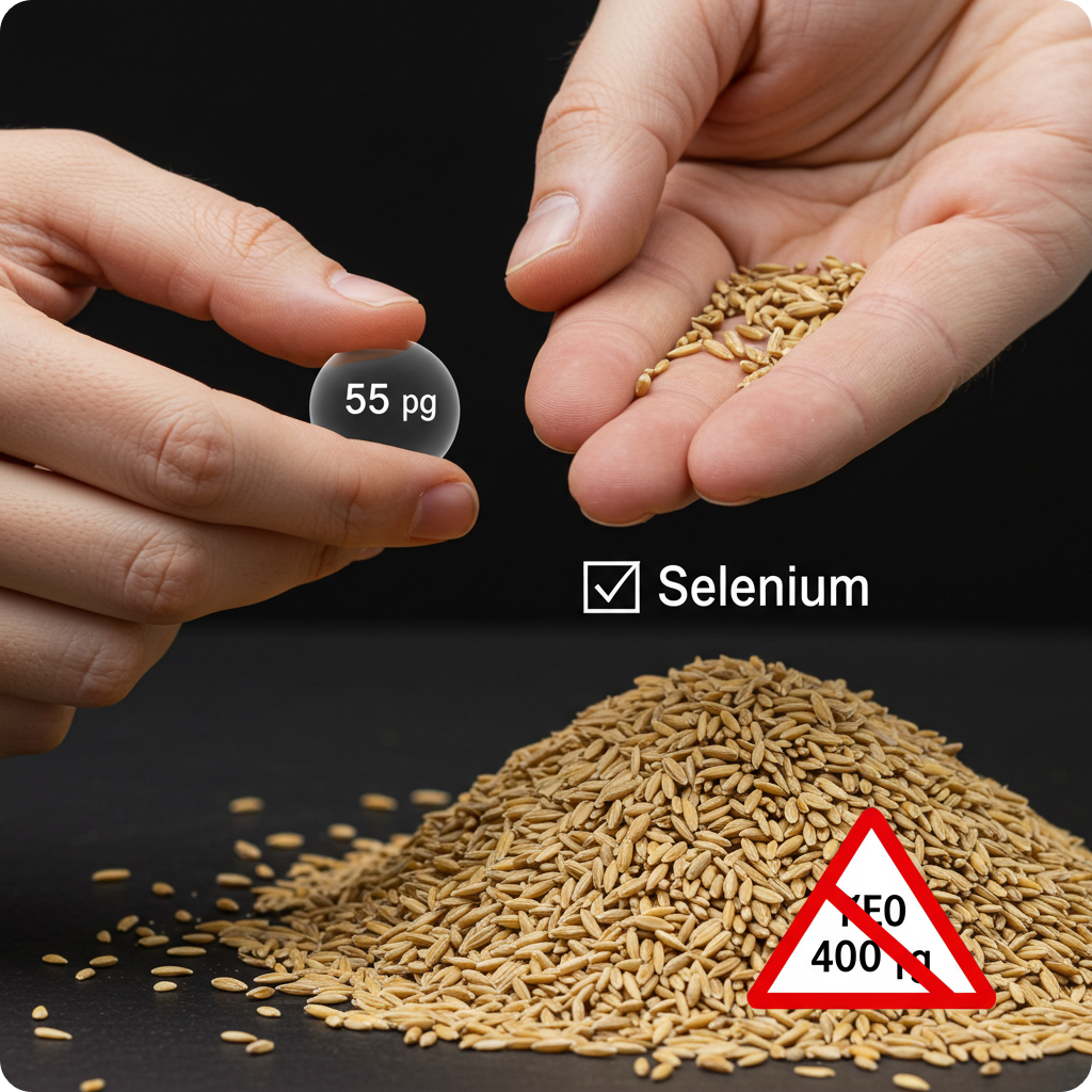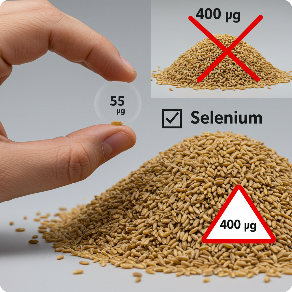 셀레늄은 체내에서 스스로 합성되지 않아 반드시 음식이나 영양제를 통해 섭취해야 하는 필수 미량 원소입니다.