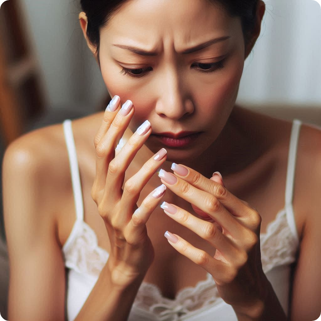 수면 부족·스트레스는 체내 호르몬과 면역 균형에 영향을 주어 손톱에도 영향을 미칩니다.