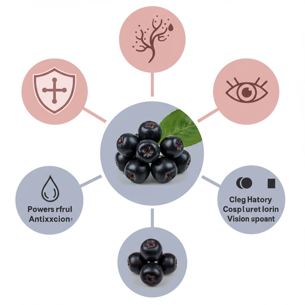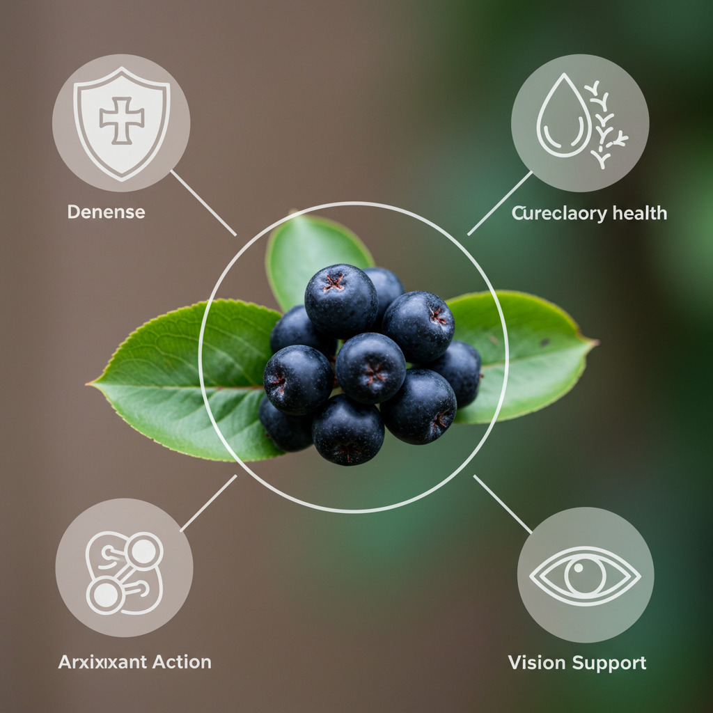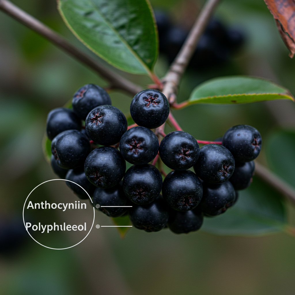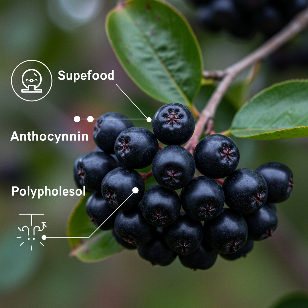 아로니아(초크베리)는 진한 보라색 베리로, 안토시아닌·폴리페놀이 풍부해 ‘베리 중의 베리’로 불립니다.