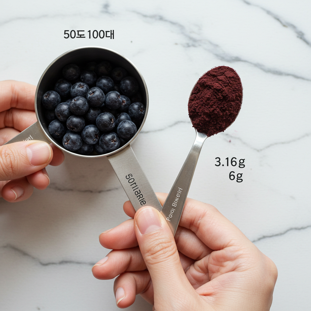 - 생과/냉동: 하루 50~100g 내외(작은 컵 1컵 정도).