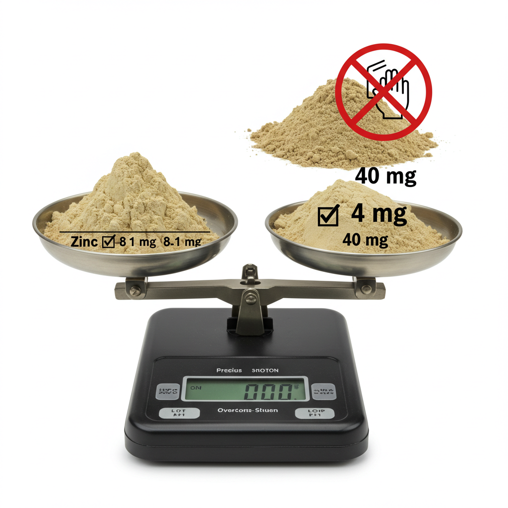 상한 섭취량(UL)은 40mg으로, 이를 초과해 장기간 복용하면 구리 결핍, 빈혈, 신경 이상 등의 부작용이 발생할 수 있습니다.