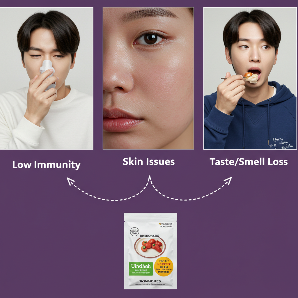 혈액 검사로 정확한 상태를 알 수 있으며, 반복되는 감염·피부 문제·미각 이상이 있을 때는 의사 상담이 필요합니다.