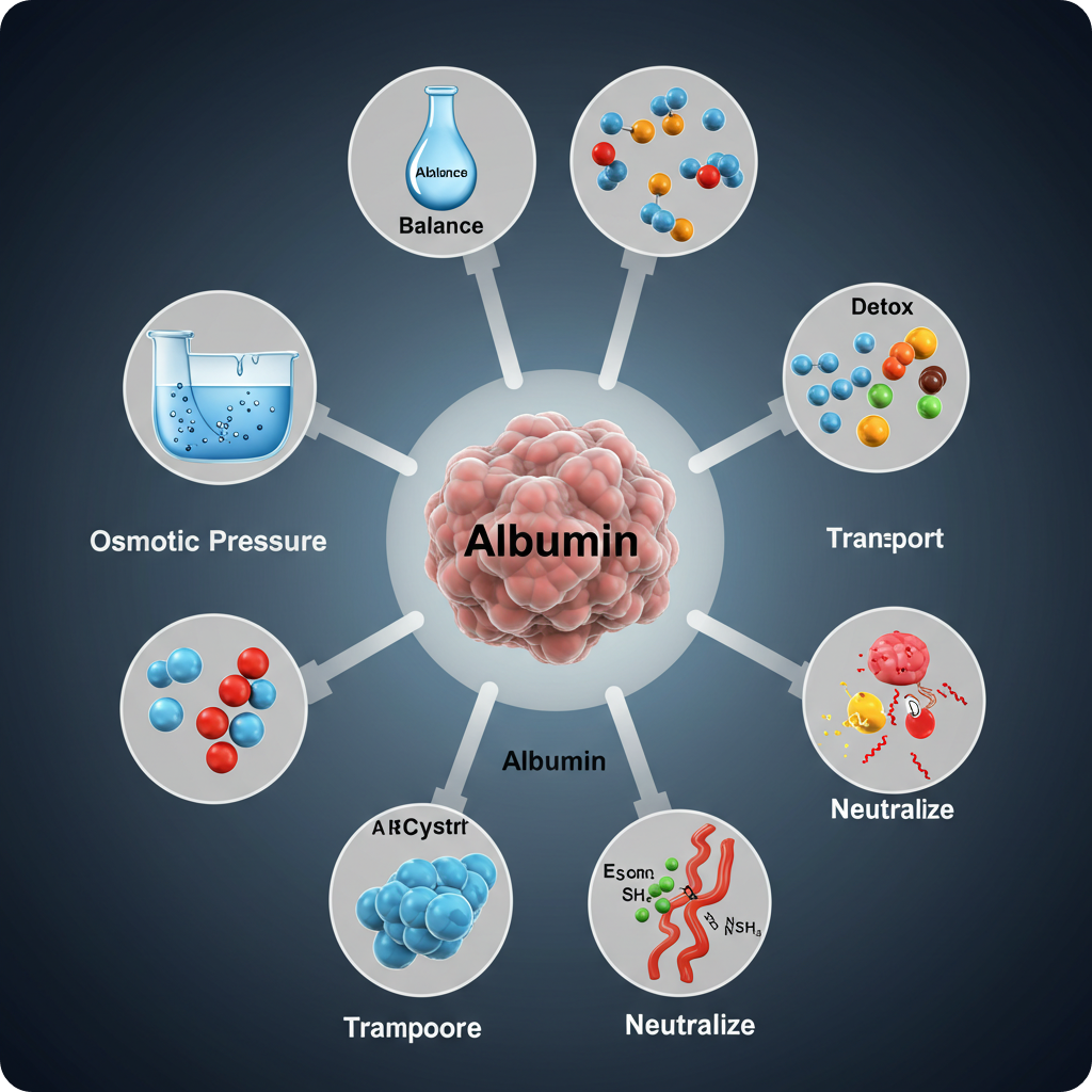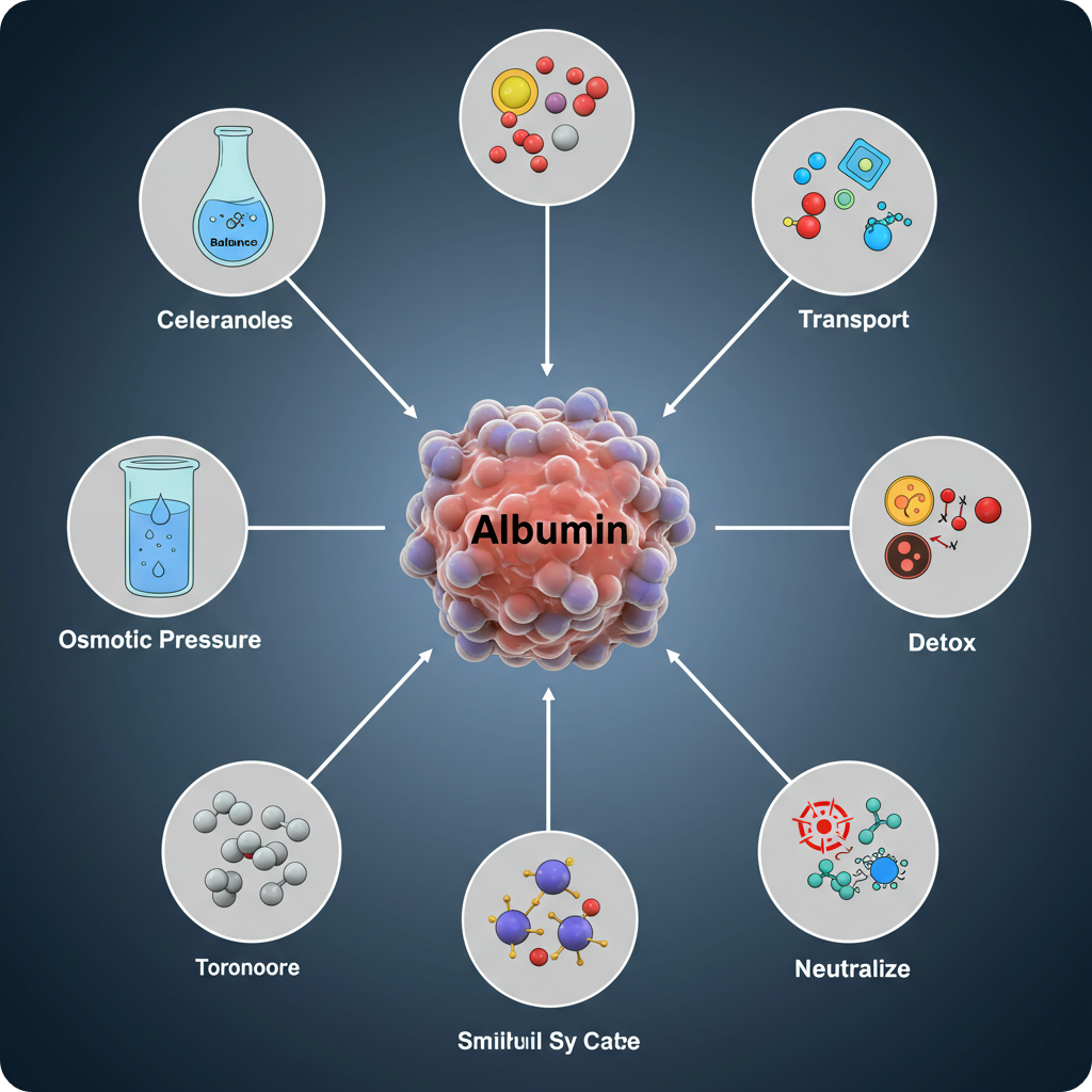 알부민은 간에서 합성되는 주요 단백질로, 혈장 단백질의 약 60%를 차지합니다. 혈액 속에서 다양한 물질을 운반하고, 체액의 균형을 유지하는 중요한 역할을 하죠.