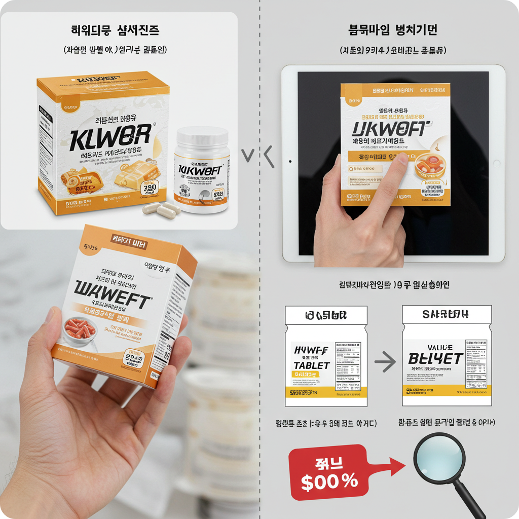 - 표시사항: 원료 함량, 섭취 방법, 알레르기·보관법 등 필수표기 체크.