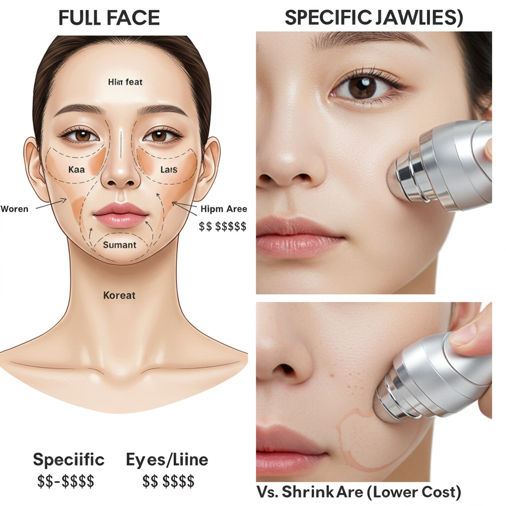 턱선/이중턱은 지방·피부 처짐 정도에 따라 샷수를 늘리면 비용도 비례해 상승합니다.