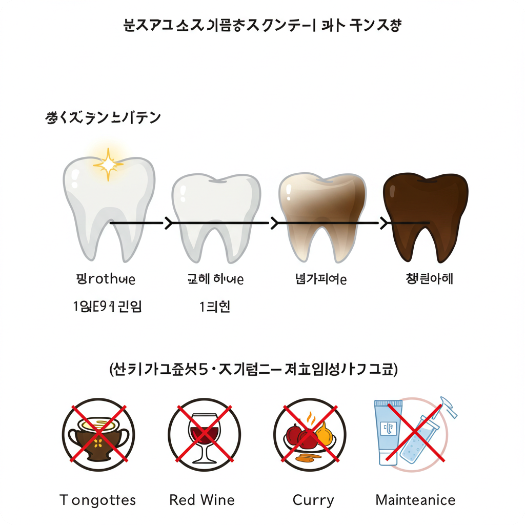 착색 유발 음식·음료를 조절하고, 정기 스케일링을 병행하면 유지력이 좋아집니다.