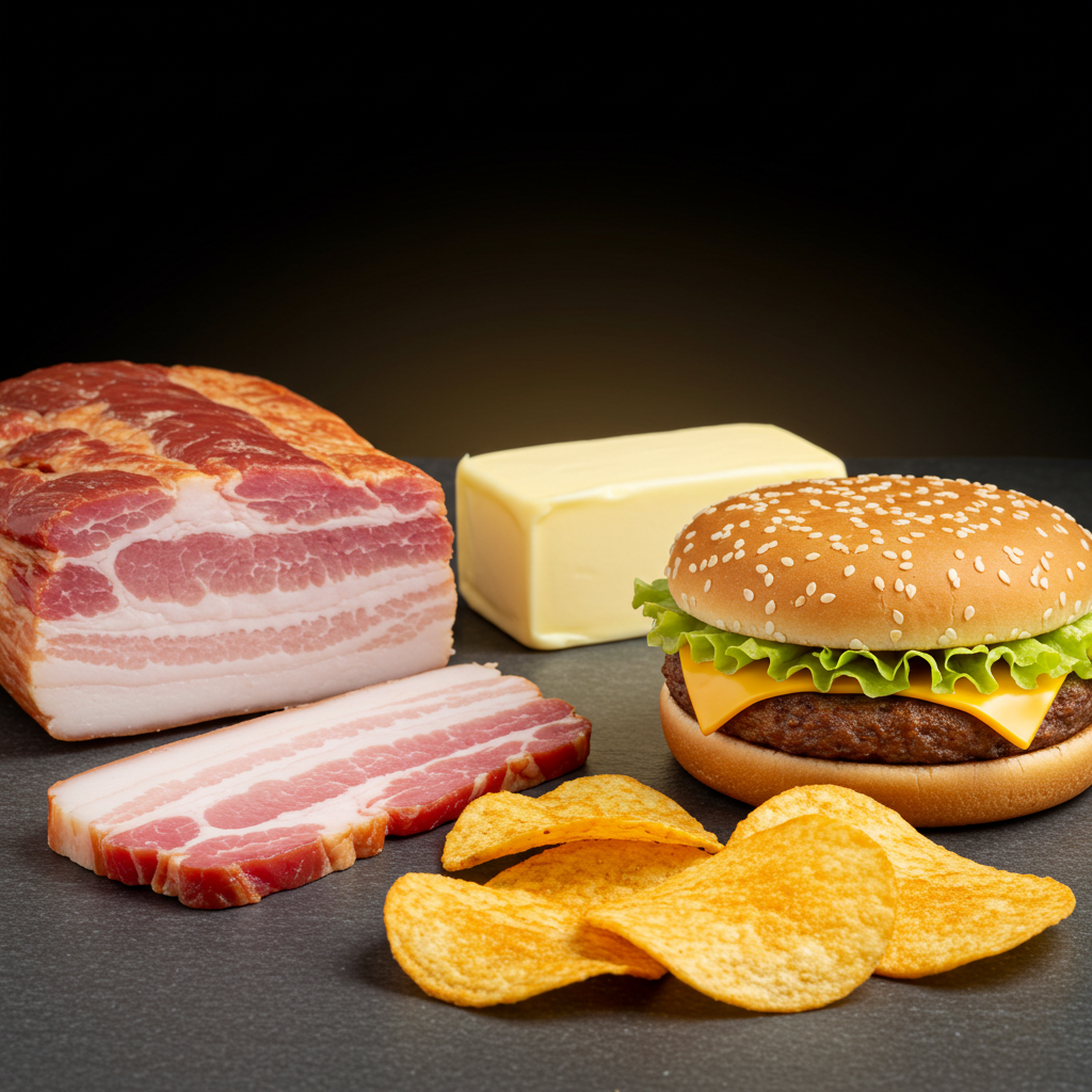튀김류, 햄버거, 과자류에는 트랜스지방이 들어 있어 혈관 건강을 크게 해칠 수 있습니다.