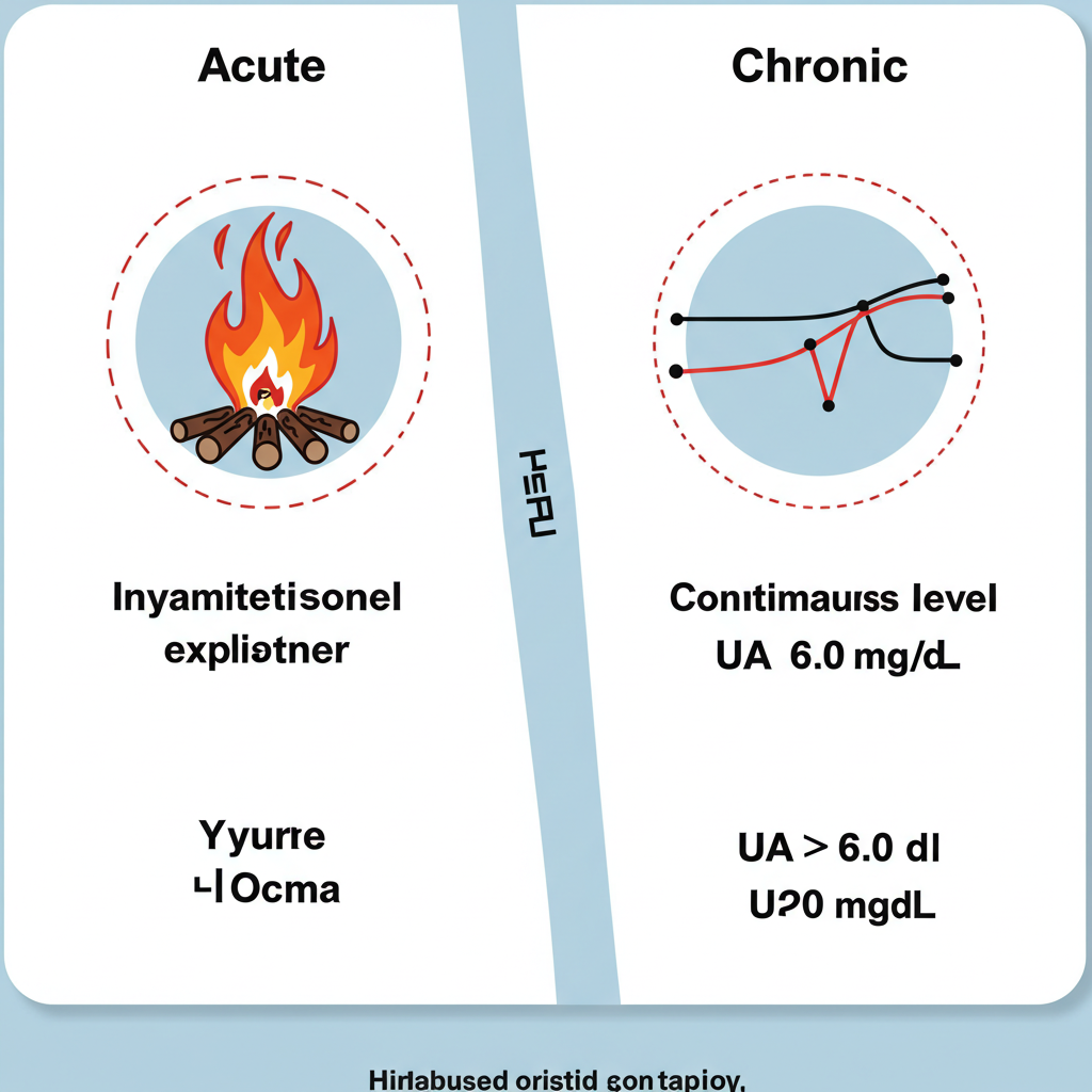 급성기에는 염증을 빠르게 가라앉히고, 안정기에 들어가면 요산 목표(대개 6.0 mg/dL 미만, 결절 있으면 5.0 mg/dL 미만)를 유지하도록 약물·생활요법을 병행합니다.