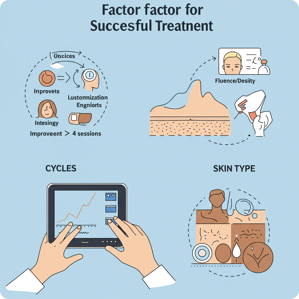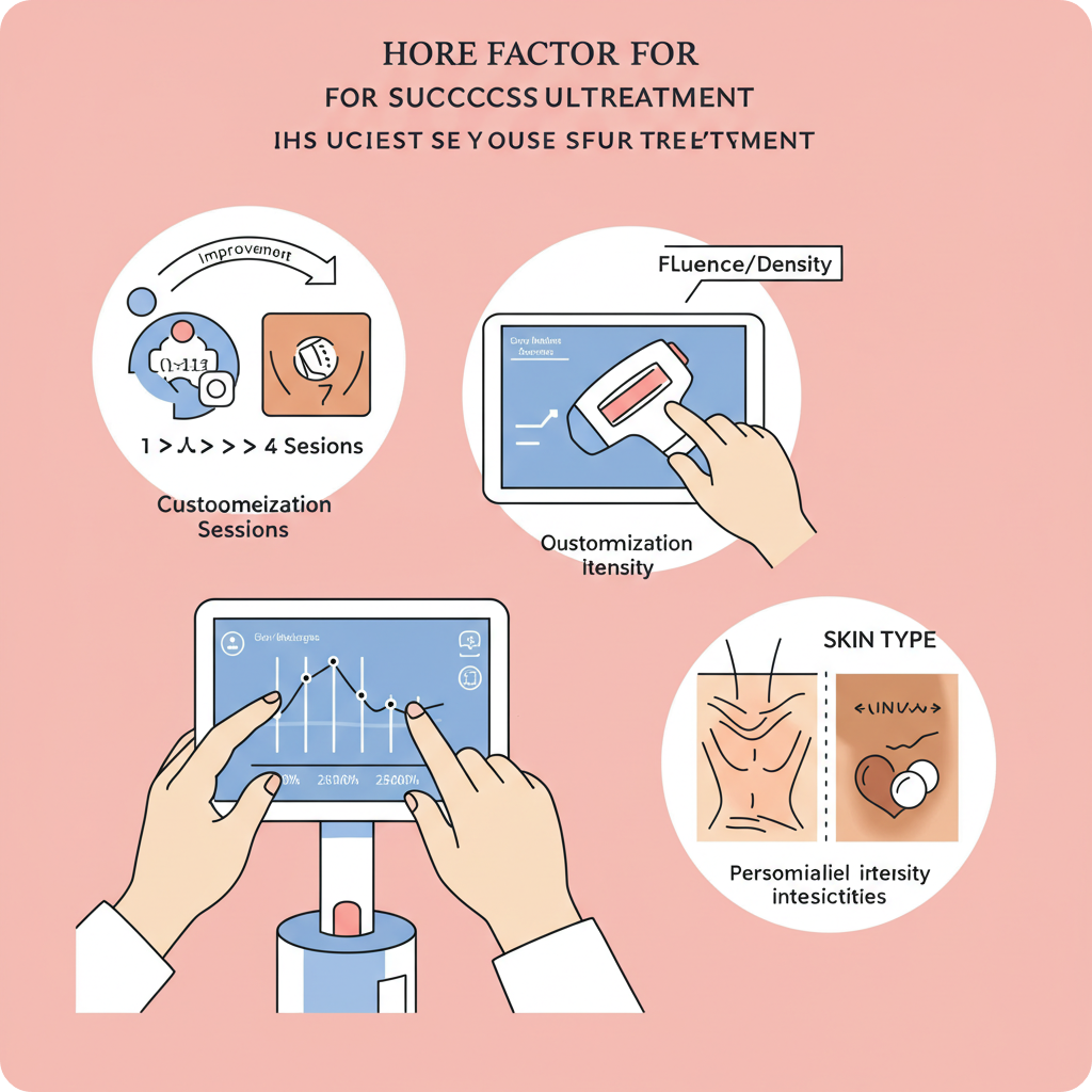 피부 톤, 민감성, 염증성 여드름 유무에 따라 플루언스(출력), 밀도, 패스 수를 맞춤 조절해야 합니다.