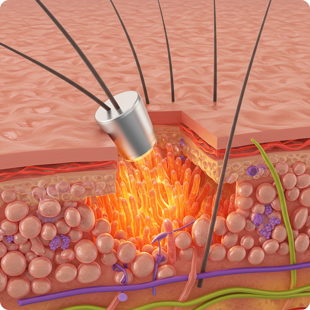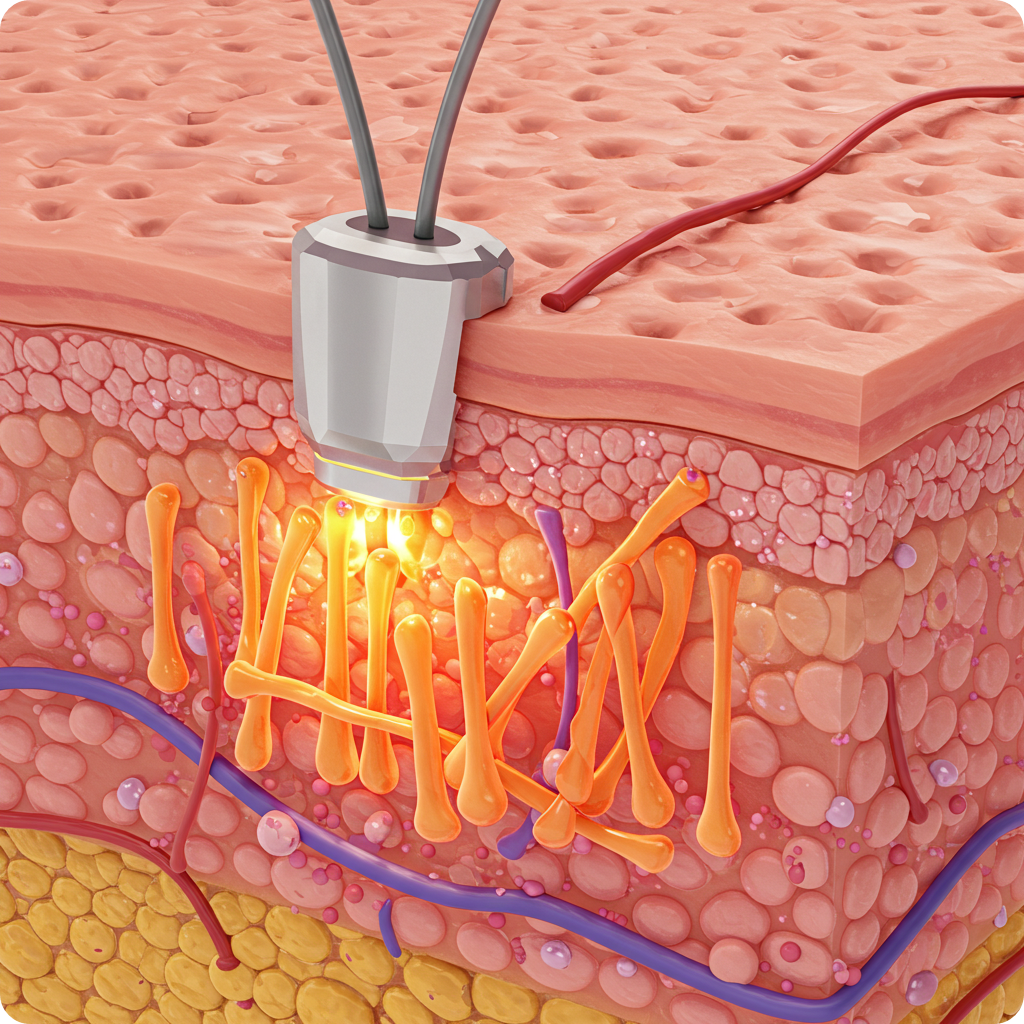 진피층의 콜라겐·엘라스틴 재배치로 모공 타이트닝과 결 개선이 나타납니다.