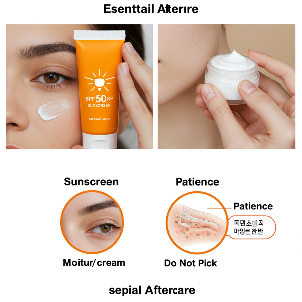 - 시술 전후 자외선 차단 철저히: 넓은 스펙트럼 SPF, 모자·마스크 병행