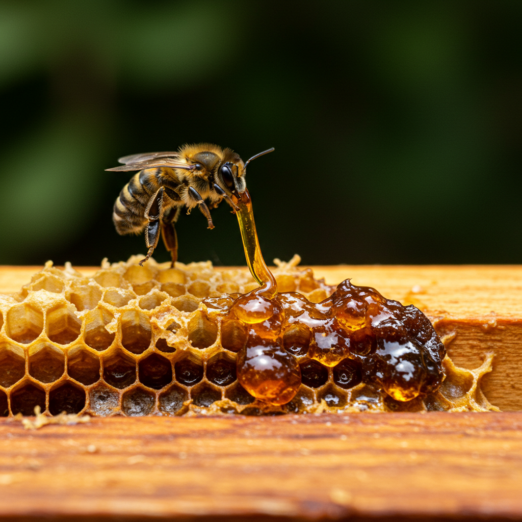 프로폴리스는 벌들이 나무 수액과 꽃가루를 채취해 만든 천연 수지 성분으로, 벌집을 보호하는 역할을 합니다.