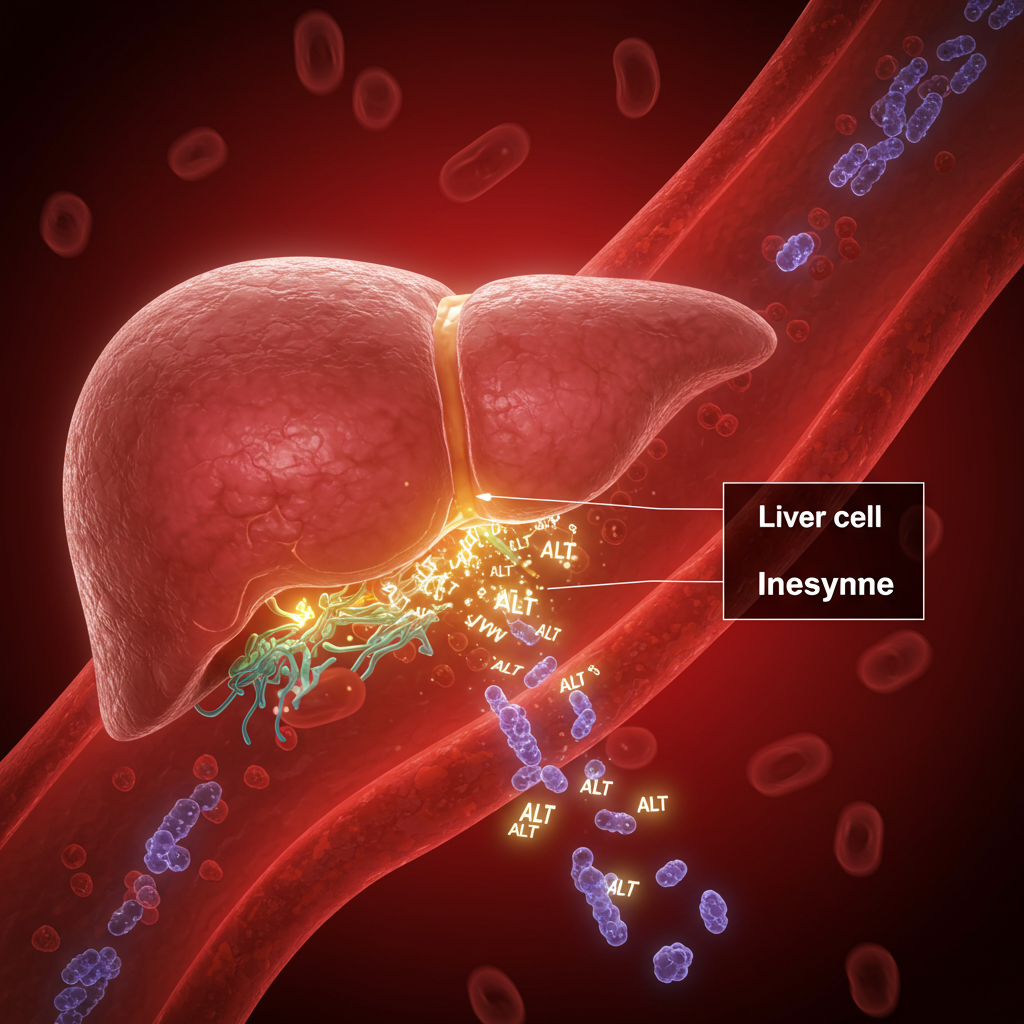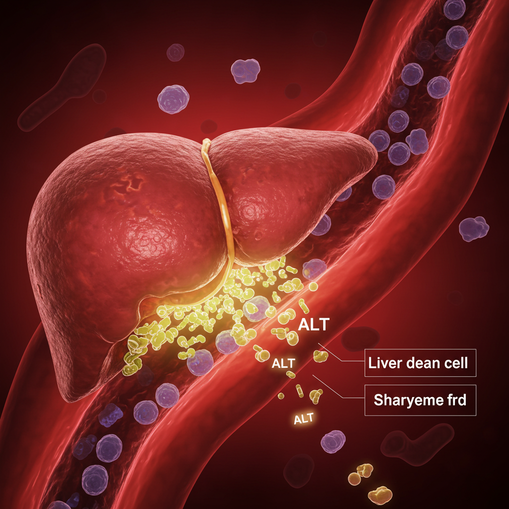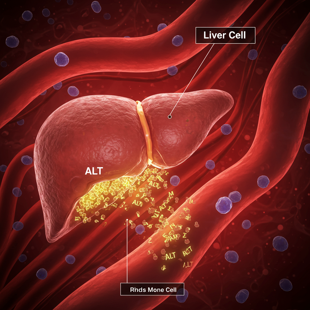 ALT(알라닌 아미노전이효소)는 간 세포 속에 주로 존재하는 효소로, 단백질 대사 과정에서 중요한 역할을 합니다. 간세포가 손상되면 ALT가 혈액으로 유출되어 수치가 상승하게 됩니다.